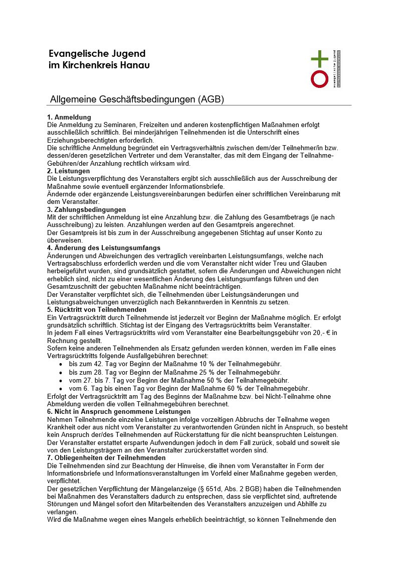 AGB`s Seite 1 - AGB´s Evangelische Jugend Hanau
